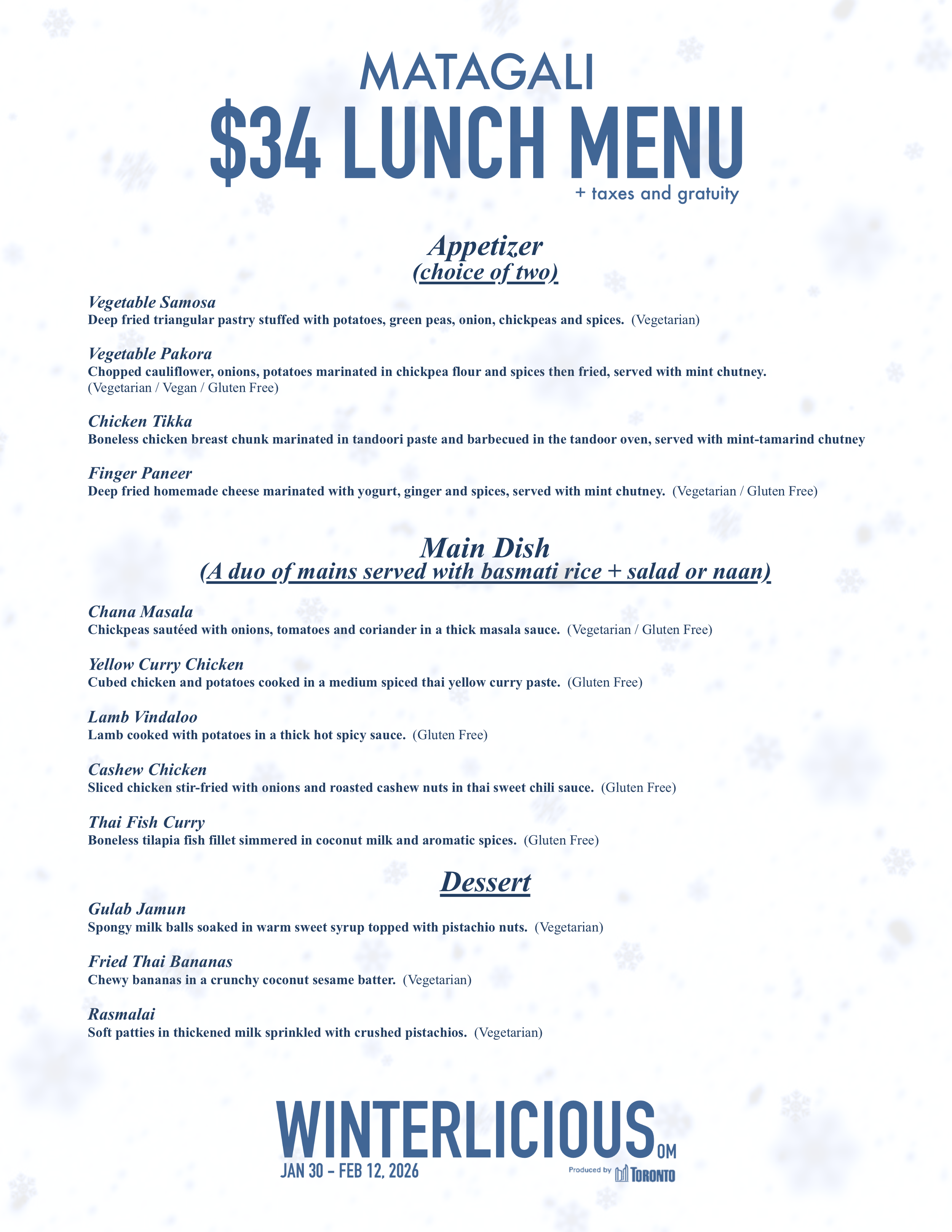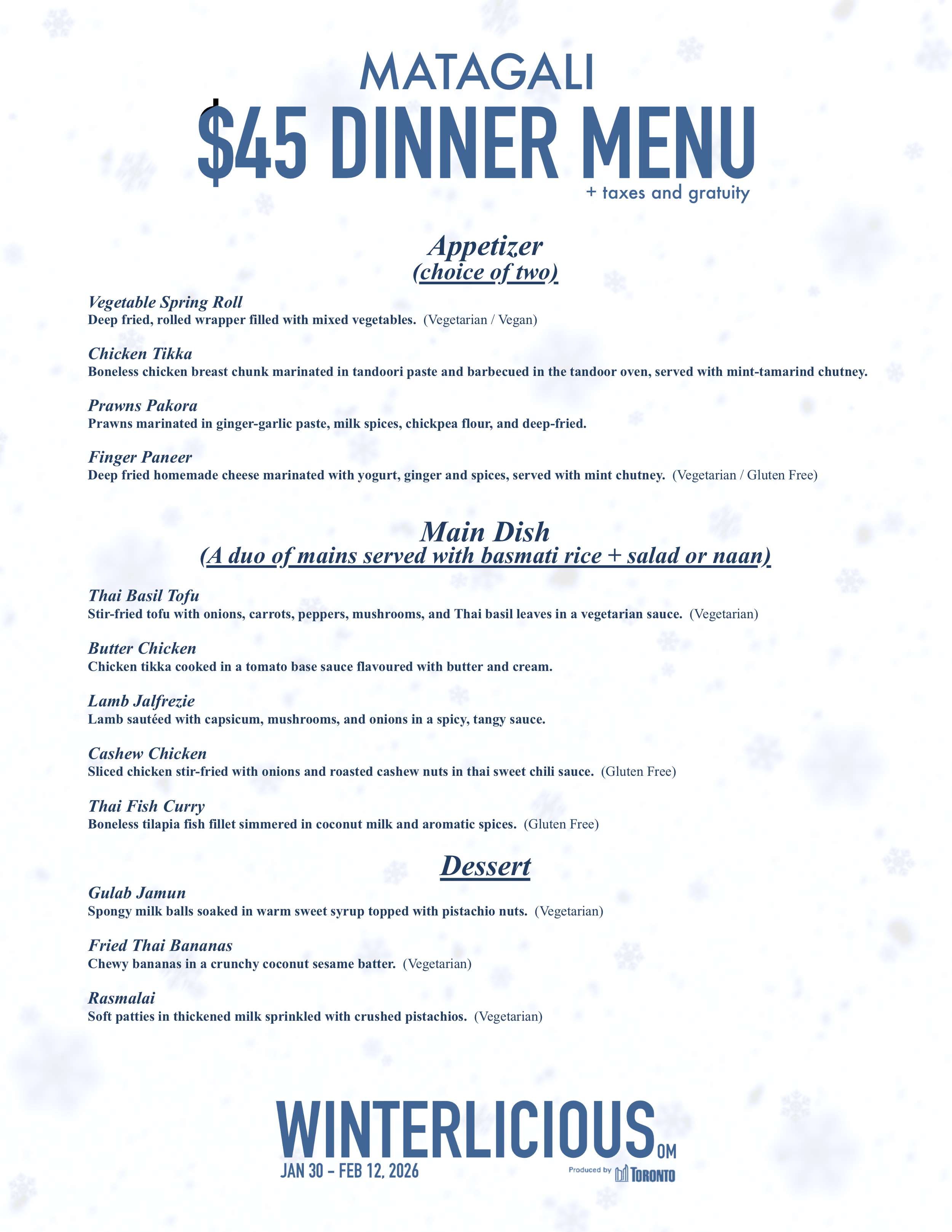 Winterlicious is back at Matagali, and from January 30th to February 12th, we’re cooking up the perfect three-course prix fixe meals to warm up your winter days!